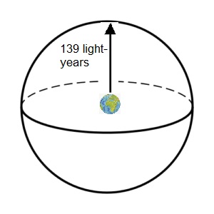 That tiny blue dot has a radius of 139 light-years with the Earth at its center and expands another light-year each year.